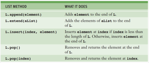 There is one huge difference between a string and a list. A string is immutable, its structure and contents cannot be changed. A list is mutable, meaning it can be changed and modified. At any point, elements can be inserted, removed, or replaced. The list itself maintains its identity, but its state— its length and its contents– can change.
